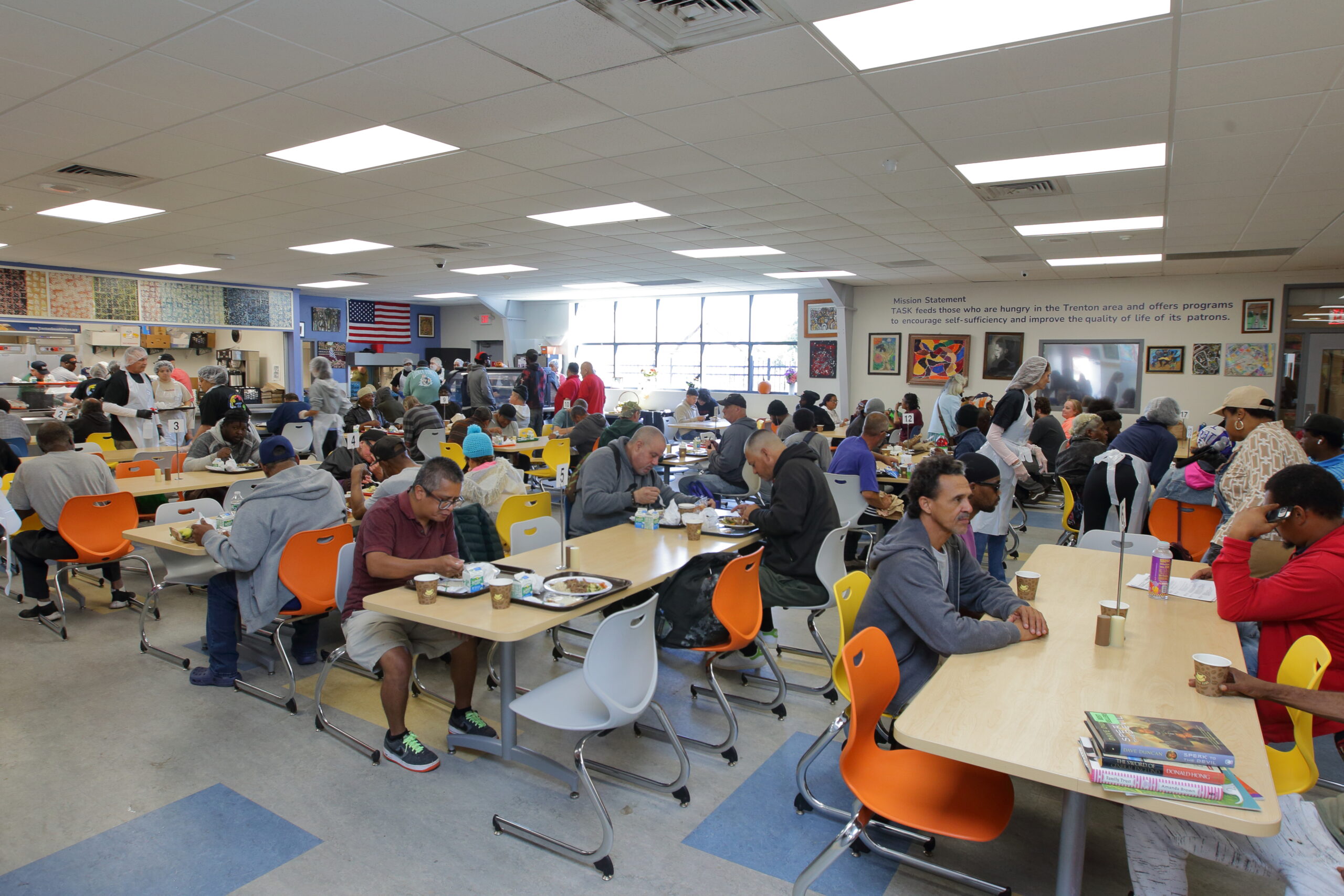 The Trenton Area Soup Kitchen feeds the hungry and offers programs and services to encourage self-sufficiency and improve quality of life for people in the Greater Trenton Area. We began serving meals 43 years ago in a church basement and have since expanded to deliver over 12,000 meals each week, six days per week, at our main Escher Street building and more than 50 community meal sites across the area. Since 1982, we have never turned away anyone who has asked us for a meal. Today, we also provide case management services, adult education programs, job search assistance and creative arts classes, empowering those we serve to thrive, not just survive.