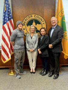 Flynn (center left) is pictured at the swearing-in ceremony with two friends of TASK, Hal (left) and Claudia (center right), and Mercer County Executive Dan Benson (right).